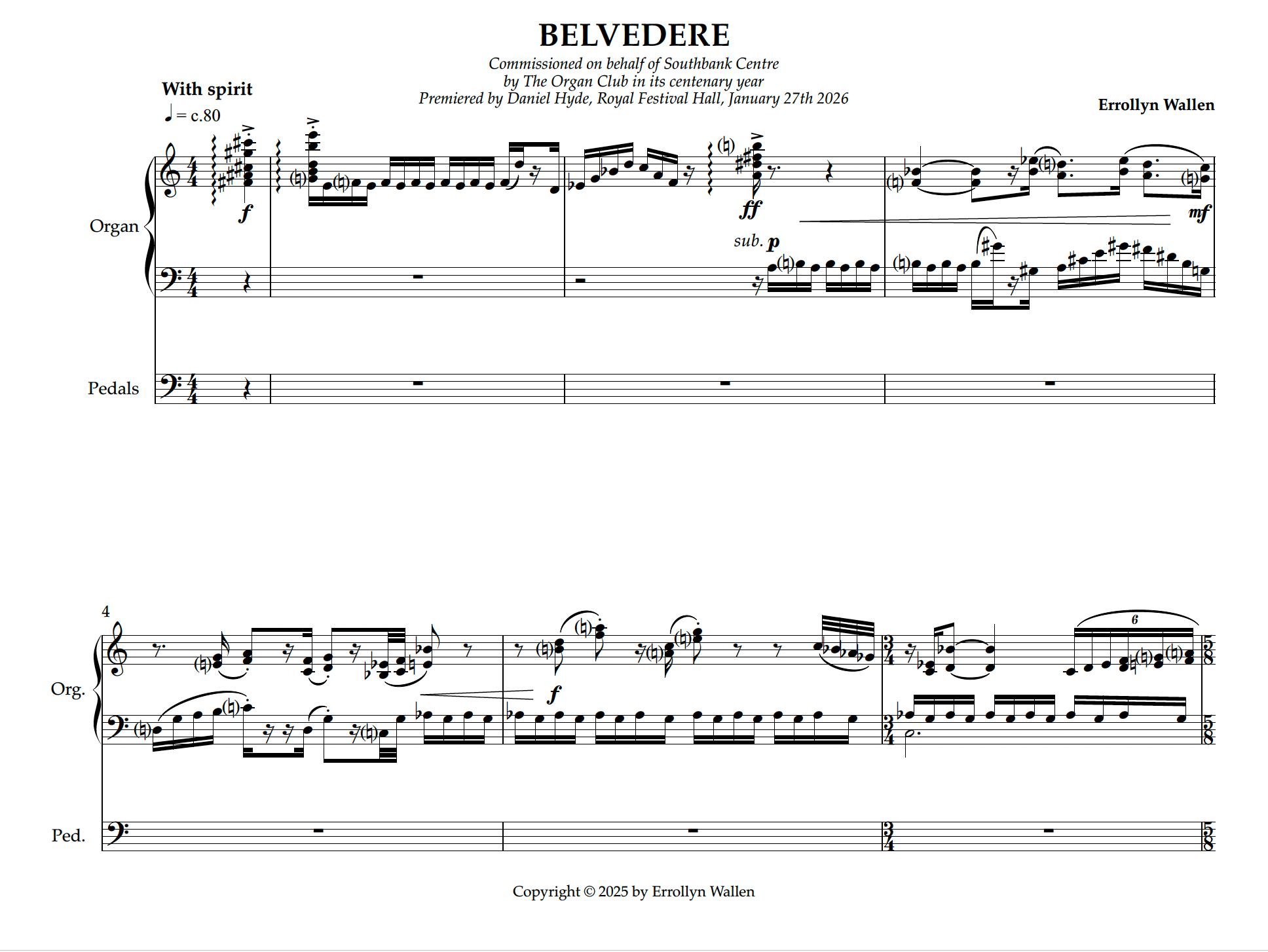 Commissioned on behalf of Southbank Centre by The Organ Club in its centenary year. Premiered by Daniel Hyde, Royal Festival Hall, January 27th 2026.