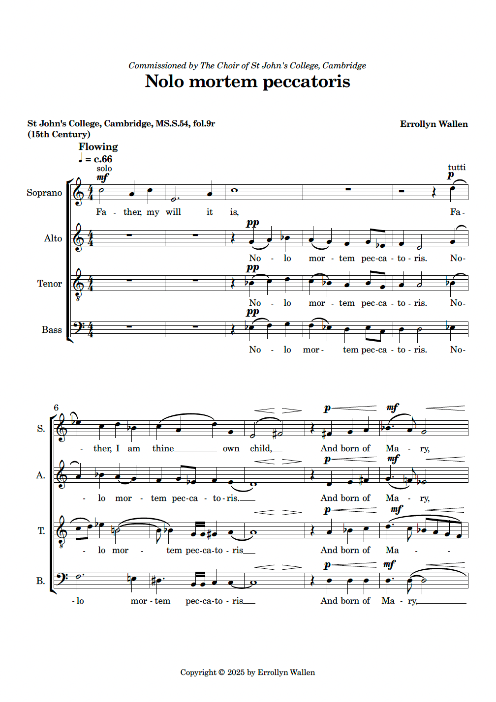 Commissioned by the Choir of St John’s College, Cambridge. World Première at the Advent Carol Services on 29th & 30th November 2025, St John’s College, Cambridge. Christopher Gray, Director of Music.