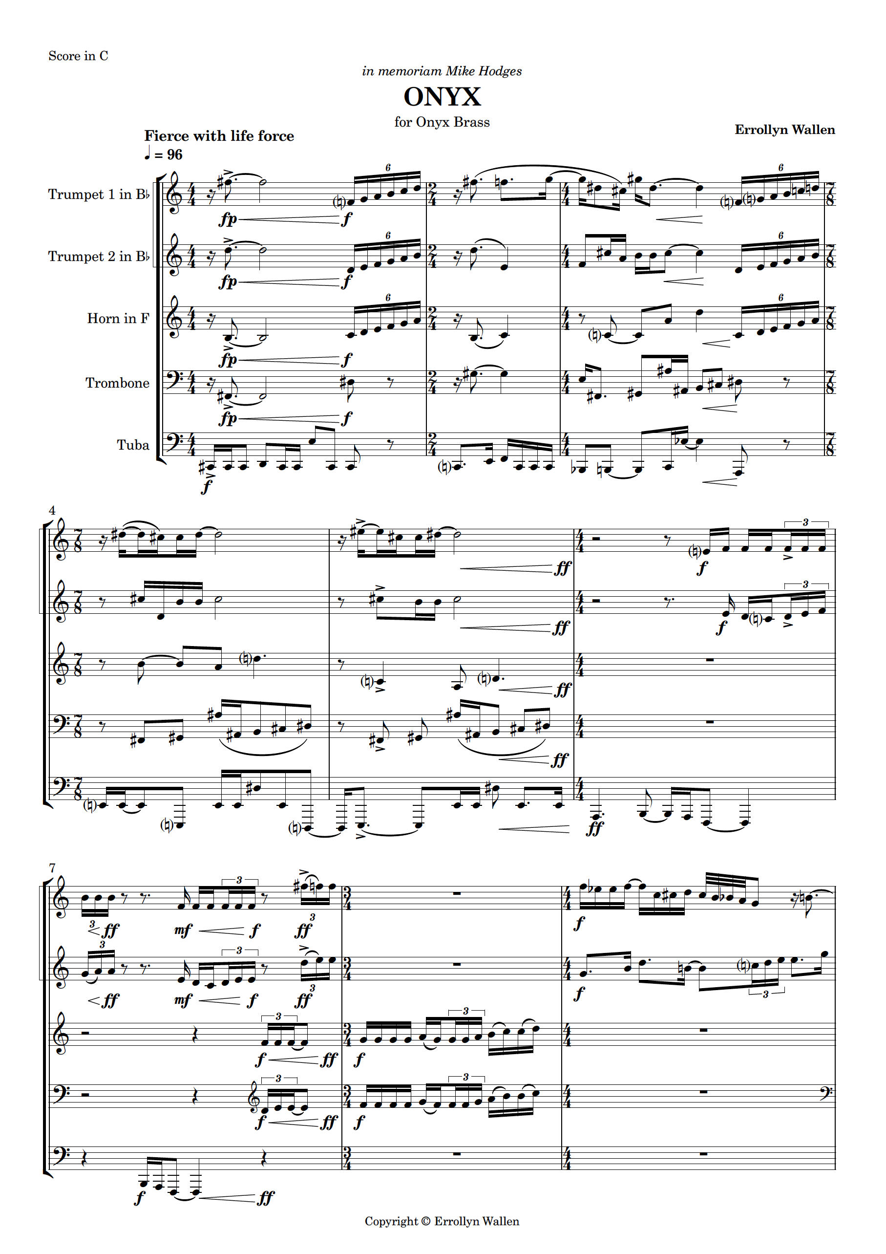Instrumentation: Trumpet I in B♭, Trumpet II in B♭, Horn in F, Trombone, Tuba.