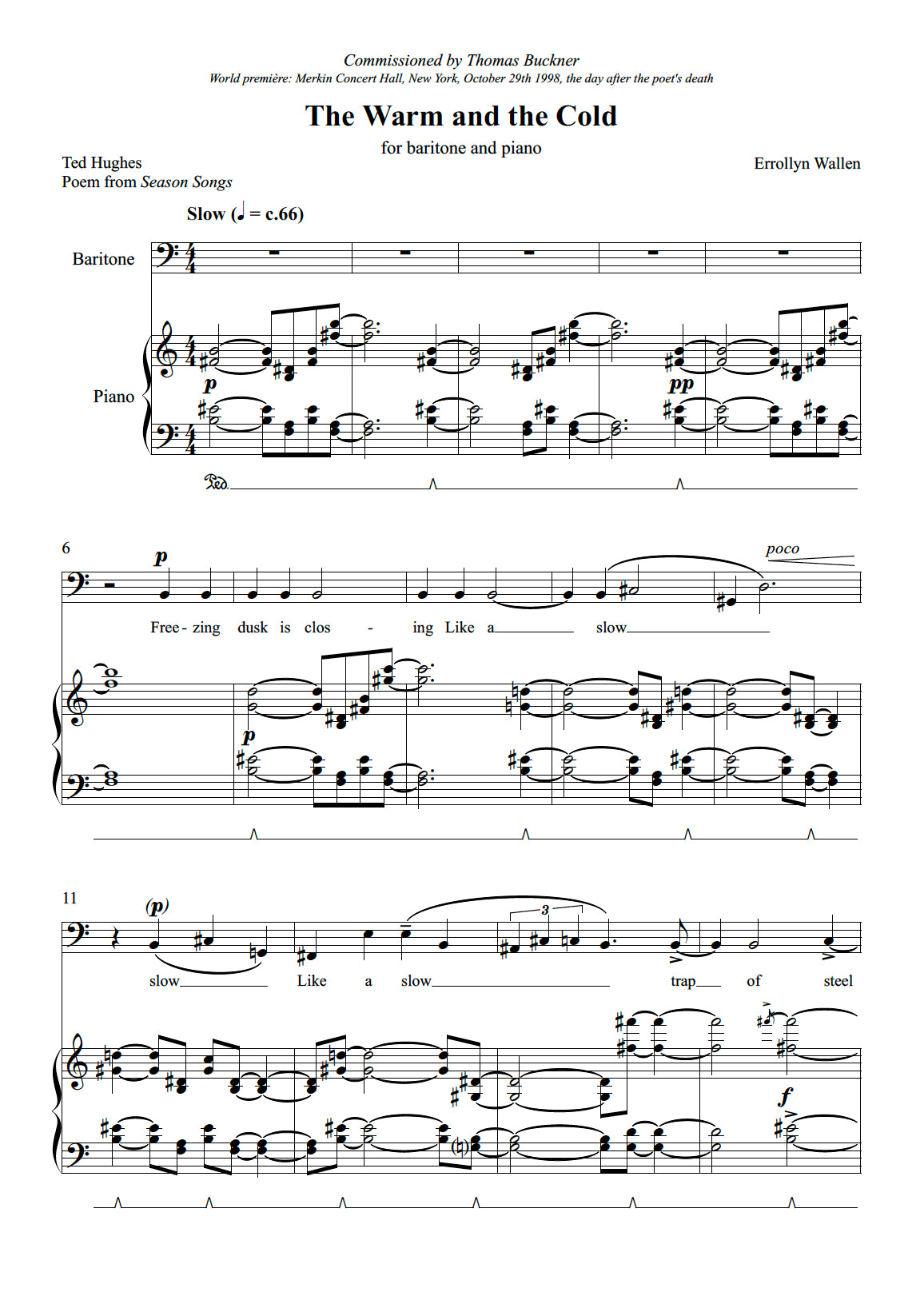 Commissioned by Thomas Buckner. World première: Merkin Concert Hall, New York, October 29th 1998, the day after the poet's death. For baritone and piano.